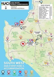 The 2026 UCI Gravel World Championships will be held in the South West of Western Australia Saturday 10 and Sunday 11 October 2026. Sportive Breaks is the official Travel Partner for the UCI World Gravel Championship 2026 in Western Australia. We offer tours, hotel packages and event support to individual riders from all nationalities who have qualified for the 2026 UCI Gravel World Championships plus we also offer services for groups, Tour Operators and National Federations.