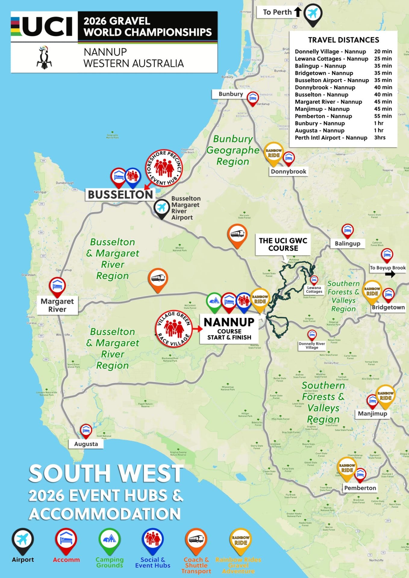 Today is the final race day for the Men’s Elite and selected age groups. We will offer a shuttle service from our hotels in Busselton to Nannup today.